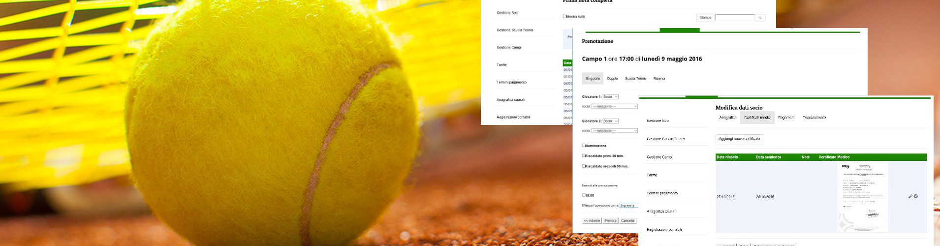 Un vero e proprio "PORTALE" del vostro club che integra in un unica soluzione la gestione dei soci, dei certificati medici, delle tessere, della scuola tennis, delle strutture, delle prenotazioni e tanto altro ancora.